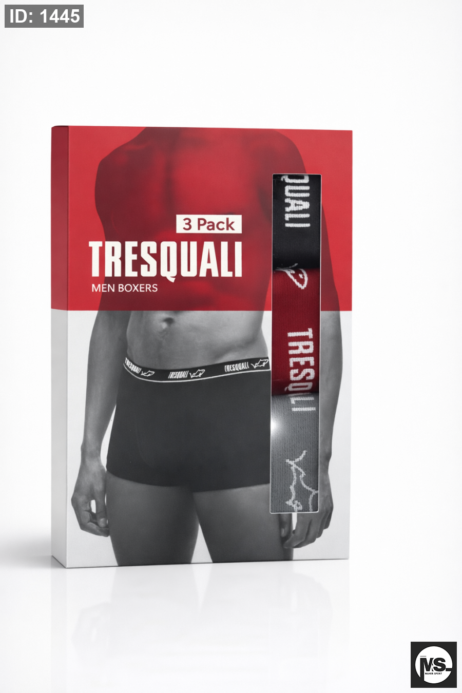 علبة من 3 قطع من سراويل بوكسر Tresquali لون اسود بكتابة بلون اسود / سكني / احمر